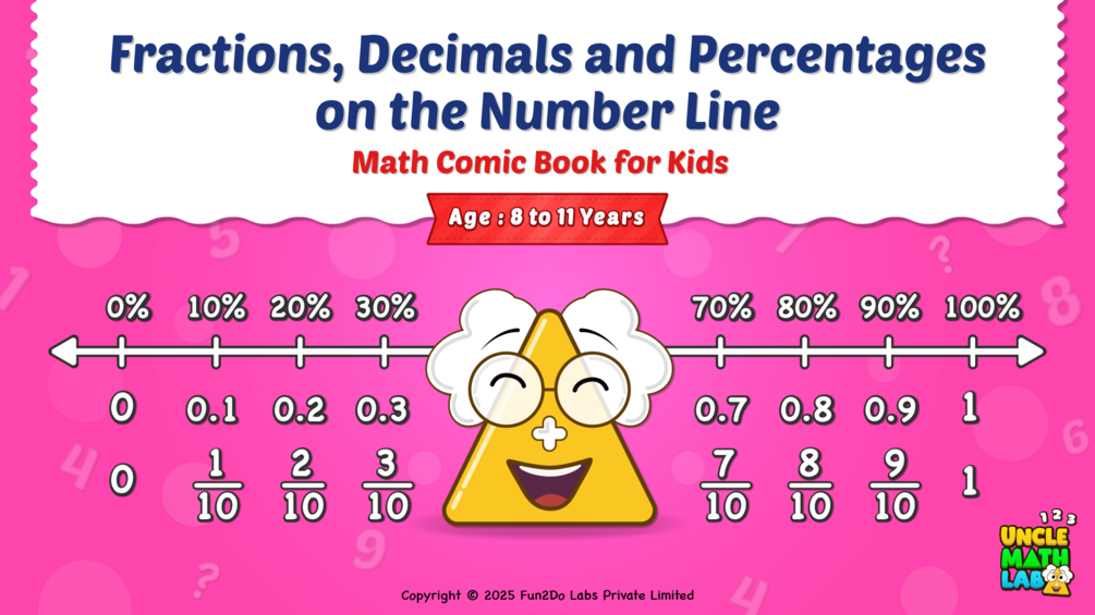 Explore a fun way to teach your kids about fractions, decimals and percentages with our vibrant math comic book, "Fractions, Decimals and Percentage on the Number Line : Math Comic Book for Kids Aged 8 to 11".