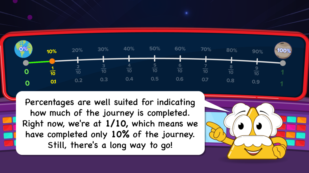 Heart : We introduce marking of fractions, decimals and percentages on the number line with an interesting story about a mission of searching for water in space. Our story also offers captivating pictures to help you learn about this topic.